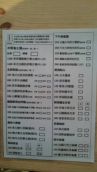 9.假日時段正餐不供應甜點,下午茶不供應正餐。